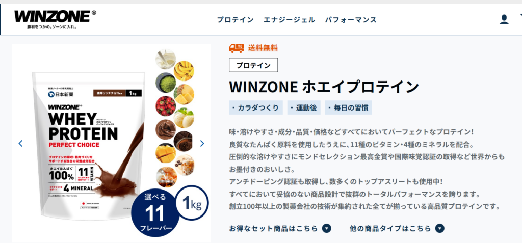 ▼WINZONE プロテイン(※購入画面で「プレーン」などの味を選択可能)